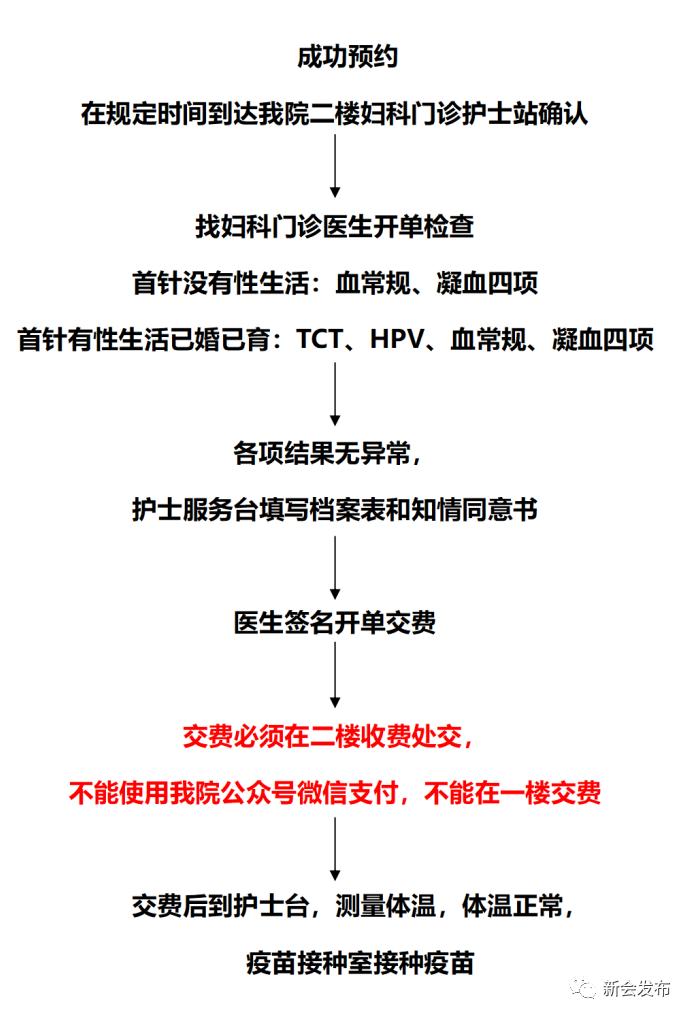 2、成功预约后,接种前需到新会区妇幼保健院二楼妇科门诊护士站确认然后完善相关接种前检查:有性生活或已婚已育者,接种前需行规范宫颈筛查TCT+HPV+血常规及凝血功能检查;没有性生活者只需行血常规及凝血功能检查;由于血常规有效时间只是一周,故应准备接种疫苗前才抽血化验。