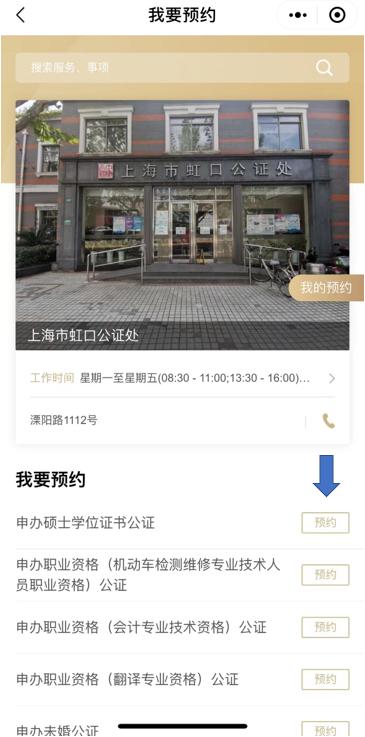 下滑选择需要办理的公证事项,点击右侧“预约”