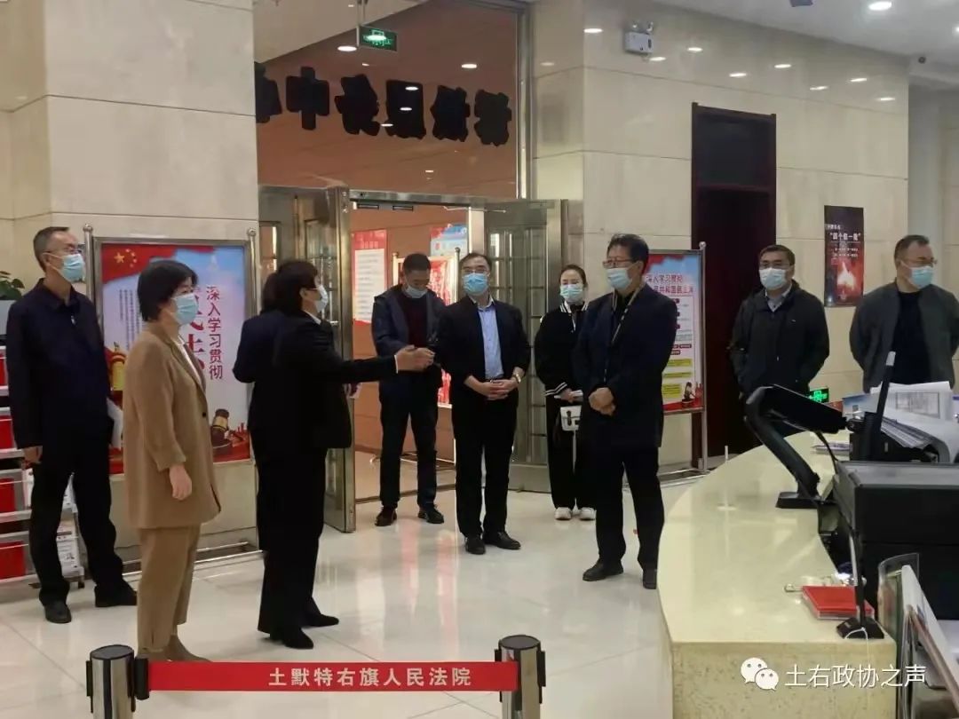 近日,旗政协副主席刘少峰一行莅临土默特右旗人民法院,对我院《中华人民共和国民法典》宣传贯彻实施情况进行调研。院党组成员、副院长王世艳,院党组成员、审委会专委巴斯琴陪同调研。