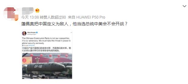 有网友表示,蓬佩奥把中国定义为敌人,他当选总统中美会不会开战?