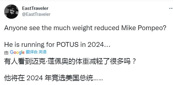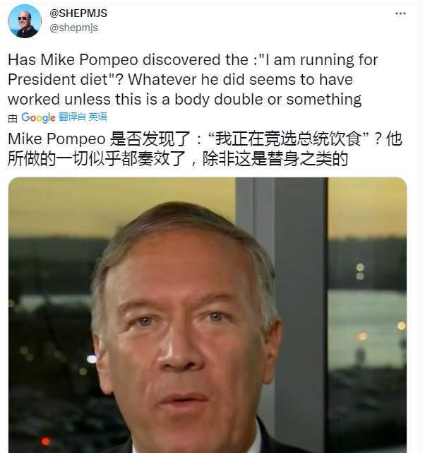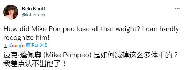 最近网友看到蓬佩奥的照片和采访视频,纷纷表示不敢认,这还是当年的“蓬胖”吗?!