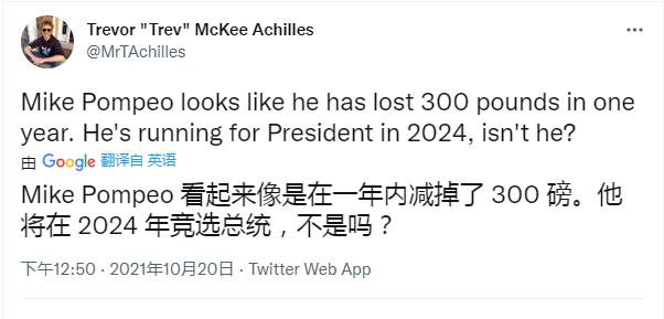 不过还是美国网友更懂选举政治中的这一套,一语道破其中奥秘:一年瘦了将近300磅(嘲讽,可能是30多磅),这是要为总统竞选做准备呀!