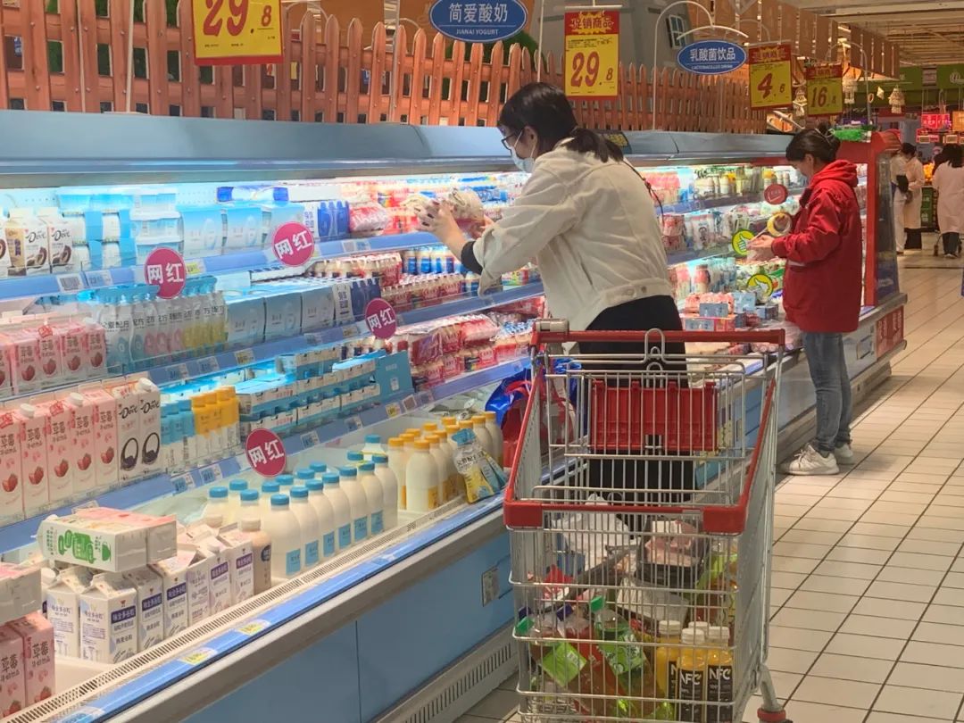 “大部分是中老年顾客前来购物,购买的物品从米、面、粮、油到个人护理用品、奶制品等都有。”快销品部王经理说,因为当天是活动第一天,由于不是周末,很多上班族无法到卖场购物,多数选择线上购买的方式,满足购物需求的同时,也能减少外出的不便。
