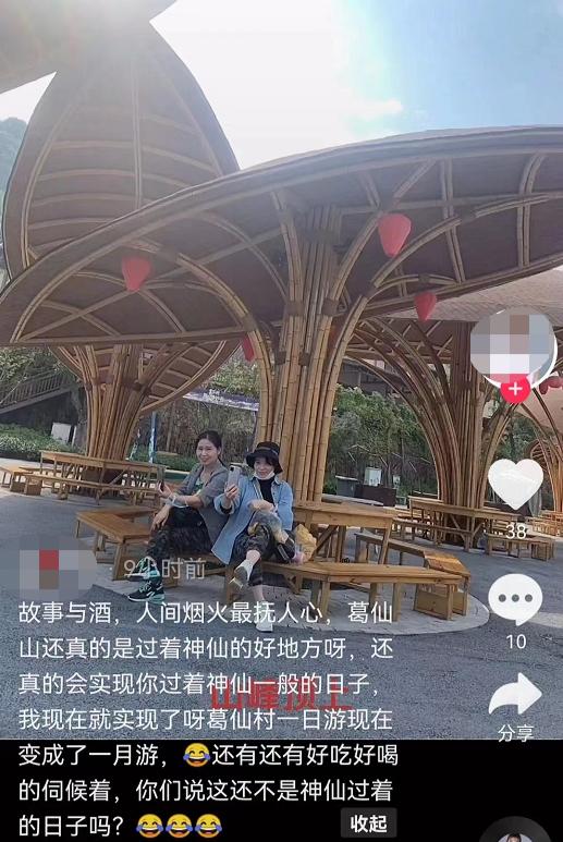 有游客发布抖音视频,并留言:葛仙山还真的会实现你过着神仙一般的日子,我现在就实现了呀!葛仙山一日游现在变成了一月游,还有好吃好喝的伺候着,你们说这还不是神仙过的日子吗?