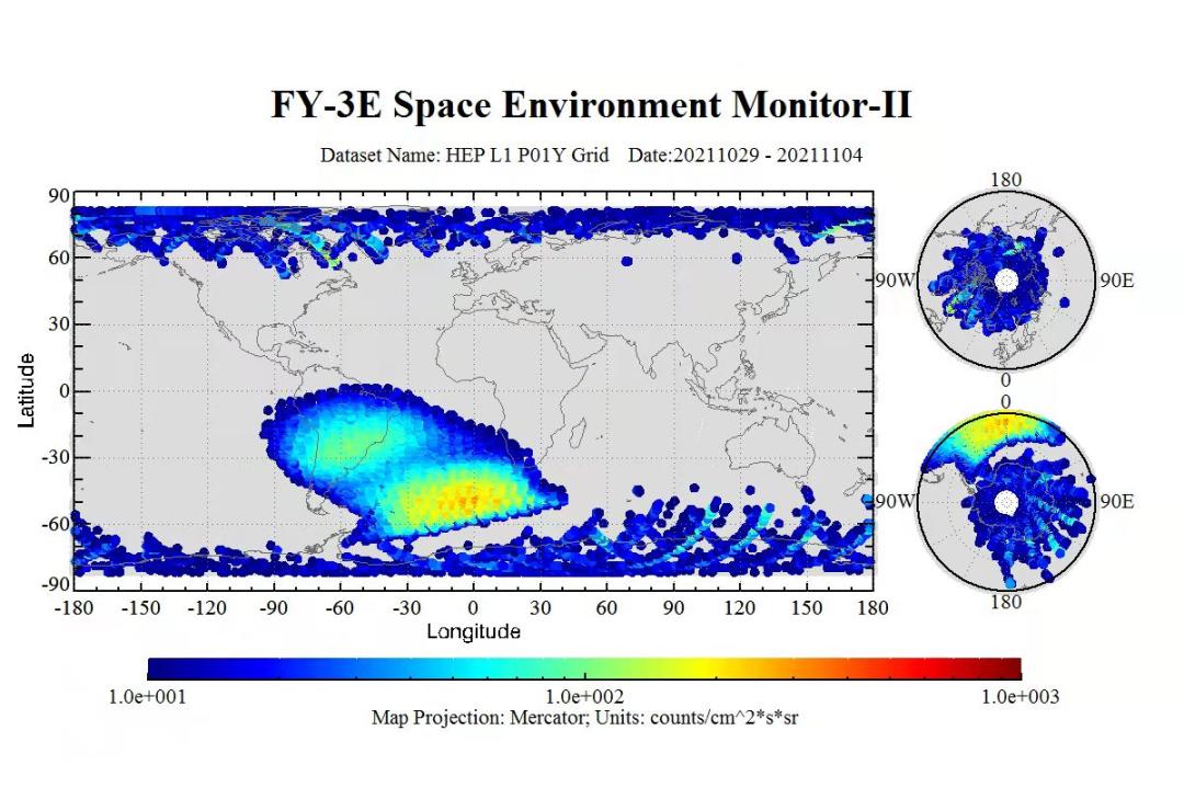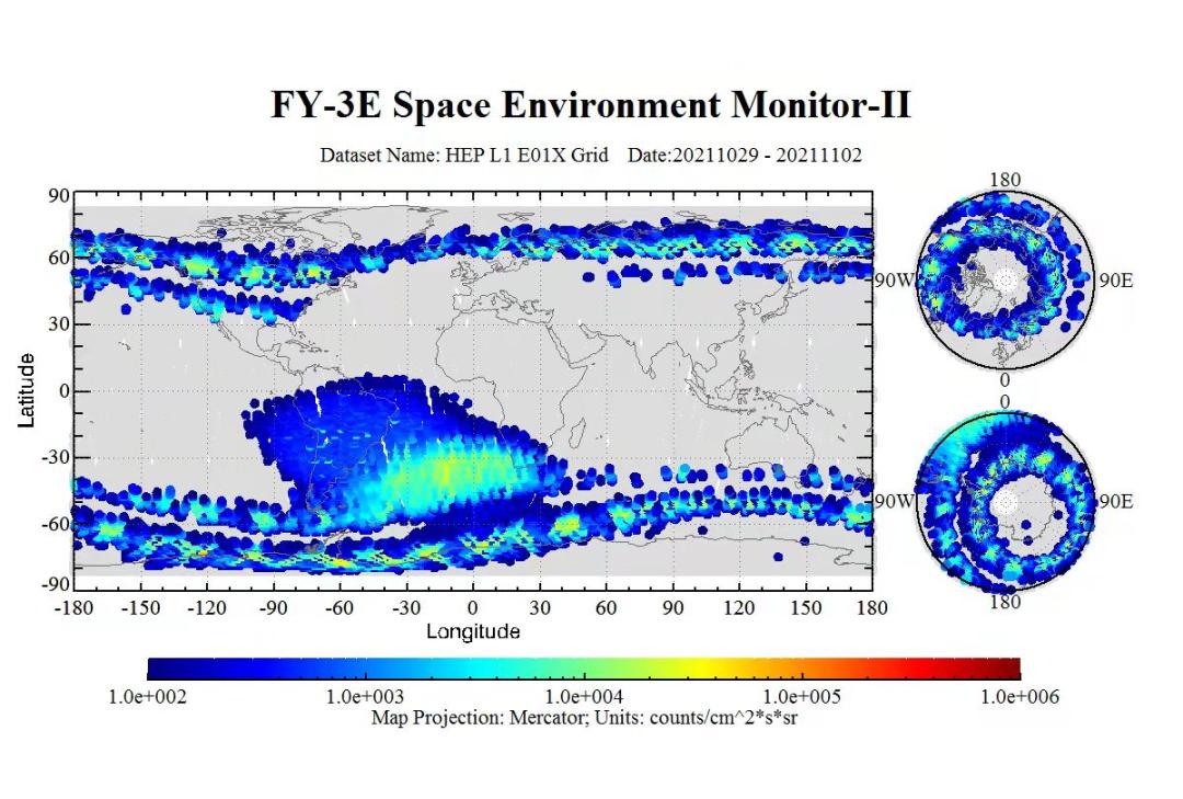 太阳风暴如约而至,地球磁场产生了强烈扰动,与此同时,风云三号E星搭载空间环境监测器-II(SEM-II),探测到了地球极区附近,相对平静时(11月2号)高能质子和电子的流量明显增强。