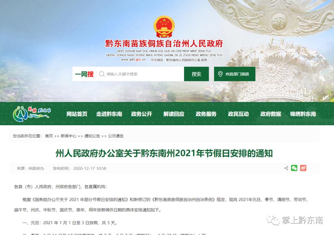 记者从《州人民政府办公室关于黔东南州2021年节假日安排的通知》中获悉,今年的苗年是农历十月初七(阳历11月11日,星期四),放假1天。