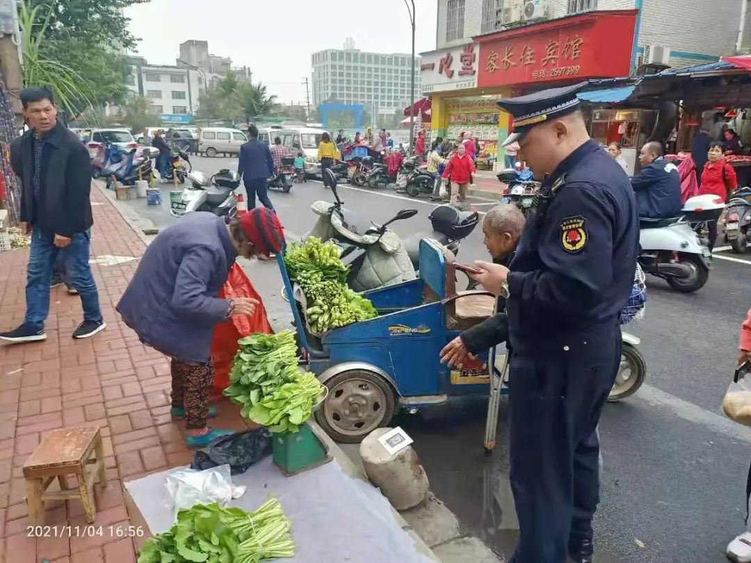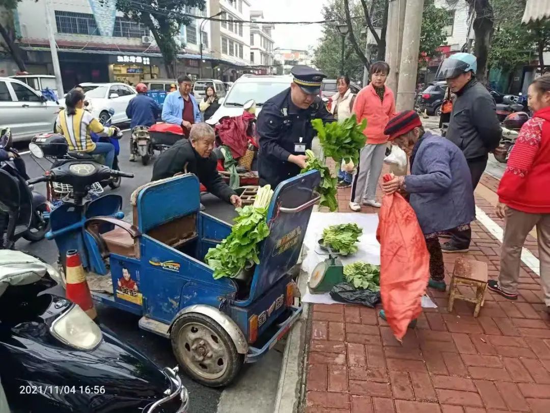 (记者 滕艳娇 通讯员 邓湖广)11月4日下午5点多,两名80多岁的老人在河东私营开发小区占道卖菜,被群众投诉。城中区城管执法局河东中队队员欧俊文随即和同事前往处置。