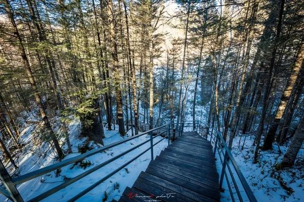 这里的游客相对较多,坡度较缓,好出照片。每逢冬季,来到这里游玩的游客络绎不绝,尤其是早上气温达到-30℃时,雾气升腾,出现雾凇,氤氲缭绕,旖旎景色彷如仙境一般。