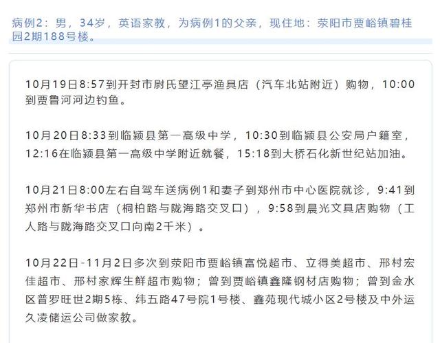 11月2日,郑州最早报告的3例新增患者中,有一对父女。病例1:女,7岁,就读于荥阳市洞林水岸小学。现住地:荥阳市贾峪镇碧桂园2期188号楼。病例2:男,34岁,英语家教,为病例1的父亲。