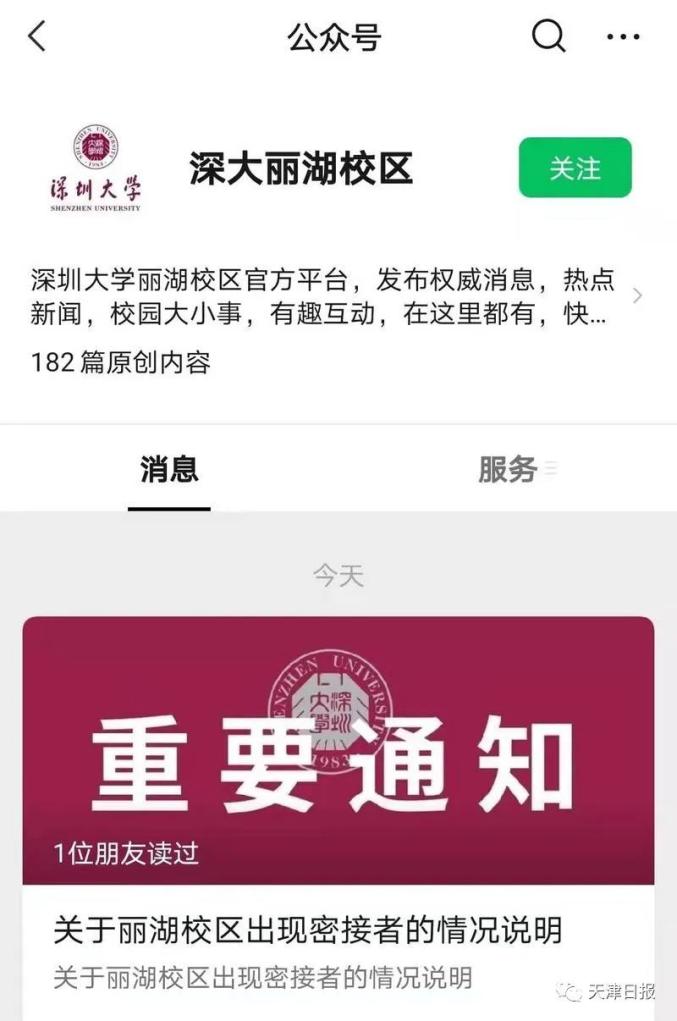 11月7日,深圳大学丽湖校区官方微信发布消息称,11月7日凌晨接到深圳市疾控中心通知,学校经济学院一名外聘教师被判定为密接者,现已隔离,核酸检测结果为阴性。