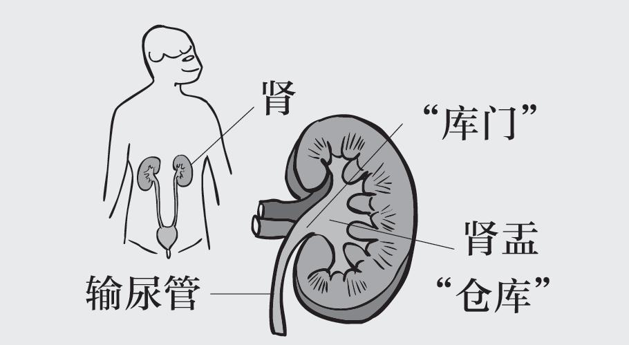 人体的肾脏产生尿液后暂存在肾盂肾盏这个“仓库”,胎儿的“仓库”容量只有1毫升,“库门”连接输尿管,以输送尿液。