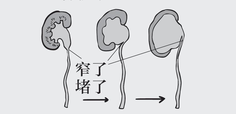 肾盂输尿管连接处窄了或堵了,库存超出正常容量,就是肾积水。生理性积水会自行消退,病理性积水严重的话会导致肾衰竭,不能掉以轻心。