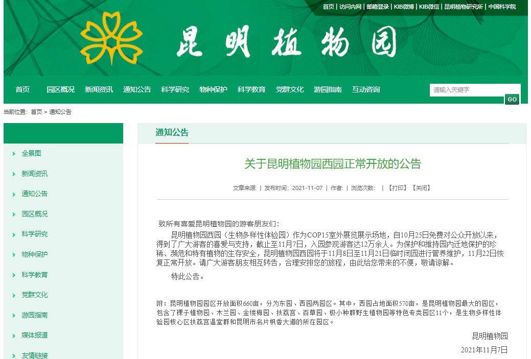 昆明植物园官网发布了