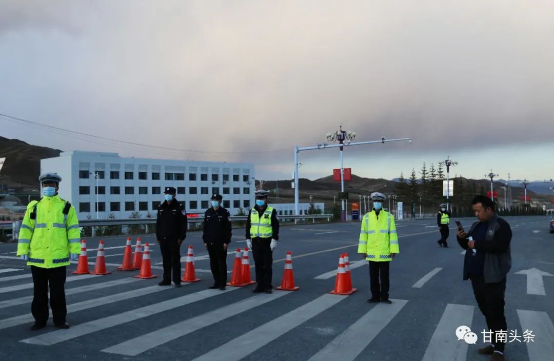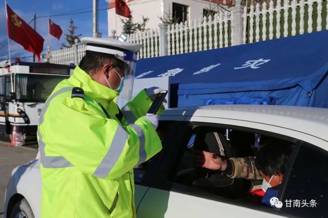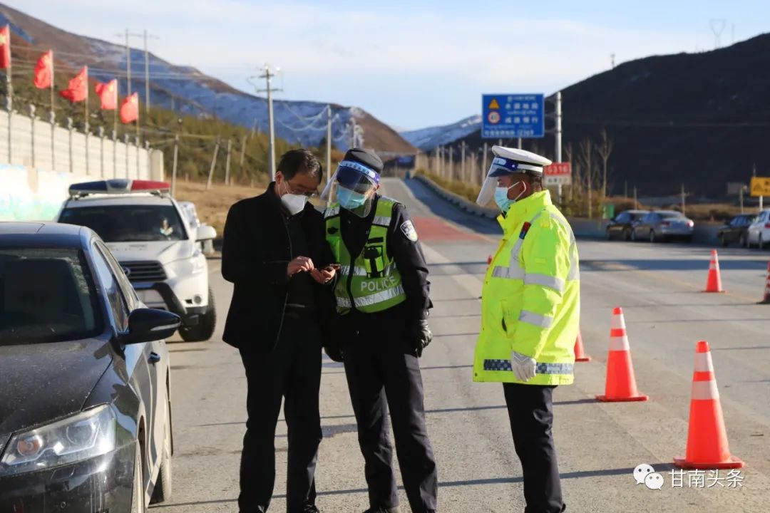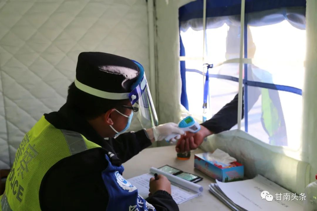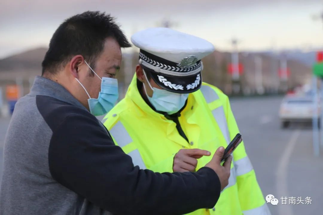 和姚良平并肩战斗的,不止是坚守南大门的战友。还有合作高速北口、临潭路等5个固定卡点和2个移动卡点。在临潭路卡点已连续值守15天的袁博,是合作市公安局交警大队城区二中队的指导员。记者前往卡点采访时,他正帮一位过境车辆司机查询手机健康码。夕阳的余辉里,袁博帽子上的警徽格外醒目。