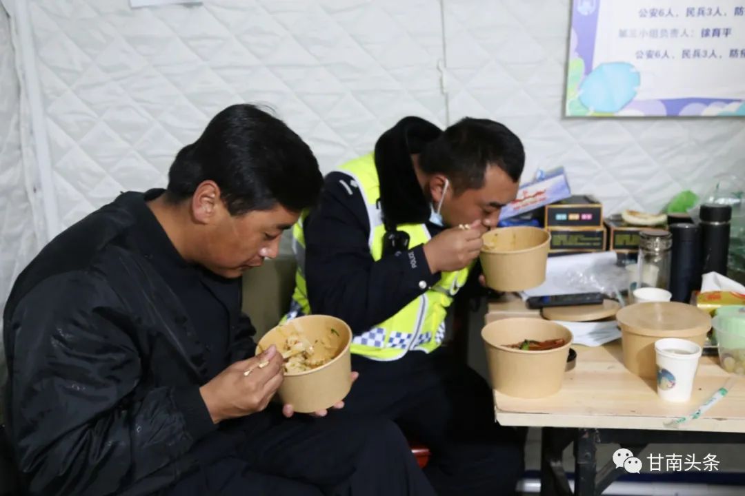 记者了解到,为了不耽误卡点工作,值勤人员每天都很少喝水,吃饭也只能轮流着吃。每次等大家忙完时,送来的外买餐差不多已经凉透了。即使这样,吃饭对大家来说也算是一个最幸福的时刻,因为可以借此小坐一会儿松口气。