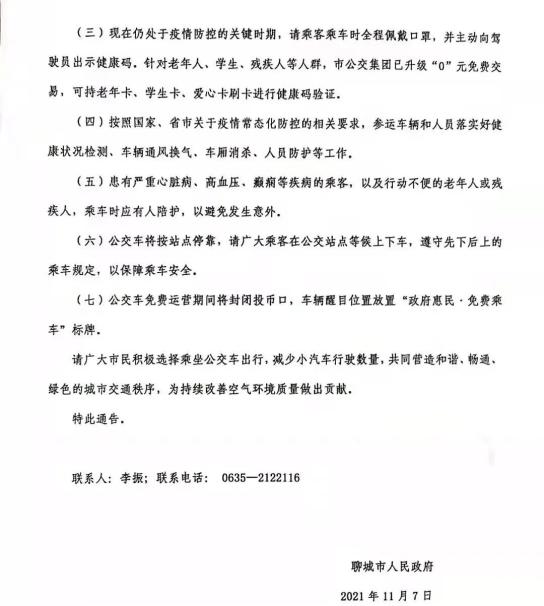此外,从11月8日起,针对老年人、学生、残疾人等人群,聊城市公交集团已升级“0”元免费交易,可持老年卡、学生卡、爱心卡刷卡进行健康码验证。