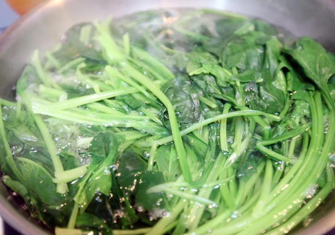 此法适合体积小,水分多的蔬菜,如油菜、菠菜、豆芽、芹菜、西蓝花等,能减少可溶性维生素的流失,焯水时可以加点食用盐,帮助保持菜色的翠绿。