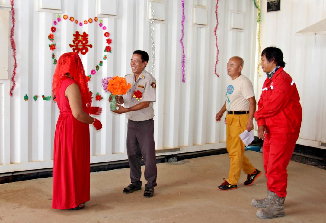 2019年8月18日,泰国项目在现场为泰籍员工操办了一场中式婚礼,新郎为库区保安班猜先生,新娘为库区服务员玛妮女士,9001钻井队(库区内)全体中泰员工和新人亲属,参与了这场新婚盛典。项目经理孙宝林作为主婚人向这对新人送上了新婚祝福。整场婚礼,虽然没有“凤冠霞帔,十里红妆”。但燃炮、携手长廊入席、交杯酒、撒喜糖、发红包,一样都不少。简朴而隆重,充满中国元素和仪式感。我们从泰国人真诚幸福的眼神里,读到尊重、情谊和信赖。这场中式婚礼,就像长了翅膀,飞遍了泰国油区和城乡,传为一时佳话,双方的友谊更在此期间不断升华。