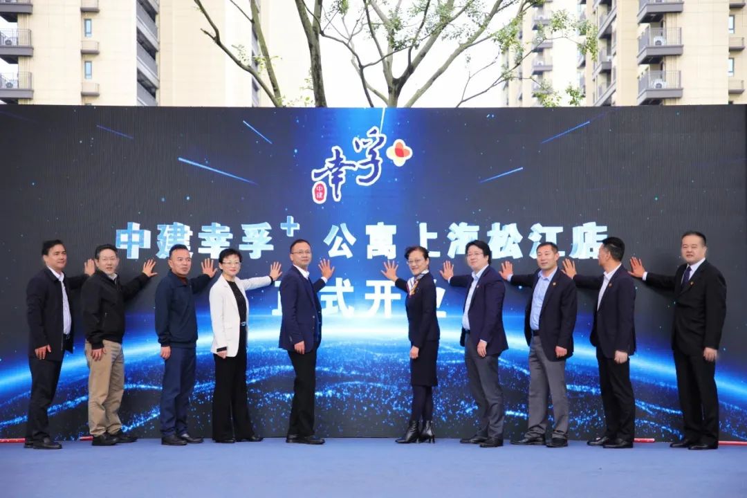 开业典礼现场举行了“中建·幸孚+”公寓品牌发布会,推出“中建·幸孚+”公寓品牌形象影片。随后举行“客户签约”、“金钥匙交接”及“开业启动”仪式,与会领导共同点亮启动屏,宣布“中建·幸孚+”公寓松江店开业运营。