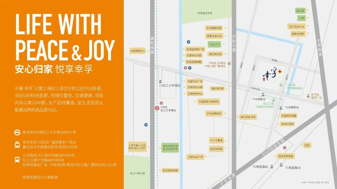 “中建·幸孚+”公寓松江店建筑面积近16万平米,由17栋高层建筑及1栋酒店式公寓组成,共有公寓2240套,户型涵盖26.08-84.3平米一居室至三居室。从质感高级灰外观到温馨格调米内饰;从硬朗直接的楼宇布局到细致合宜的花样户型;从热情的活力橙社区氛围到窗外的广阔绿意;从智慧便捷的设施设备到体贴入微的精致服务,每个细节都诚意满满、恰如其适。以品质、服务、社交为基础维度,打造集居住、购物、共享于一体的美好公寓社区,深度诠释“幸孚+安心体系”的核心要义。