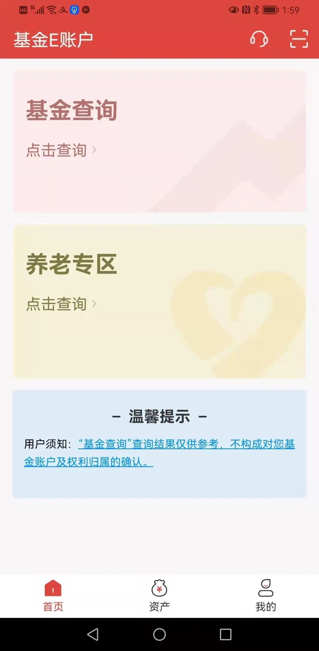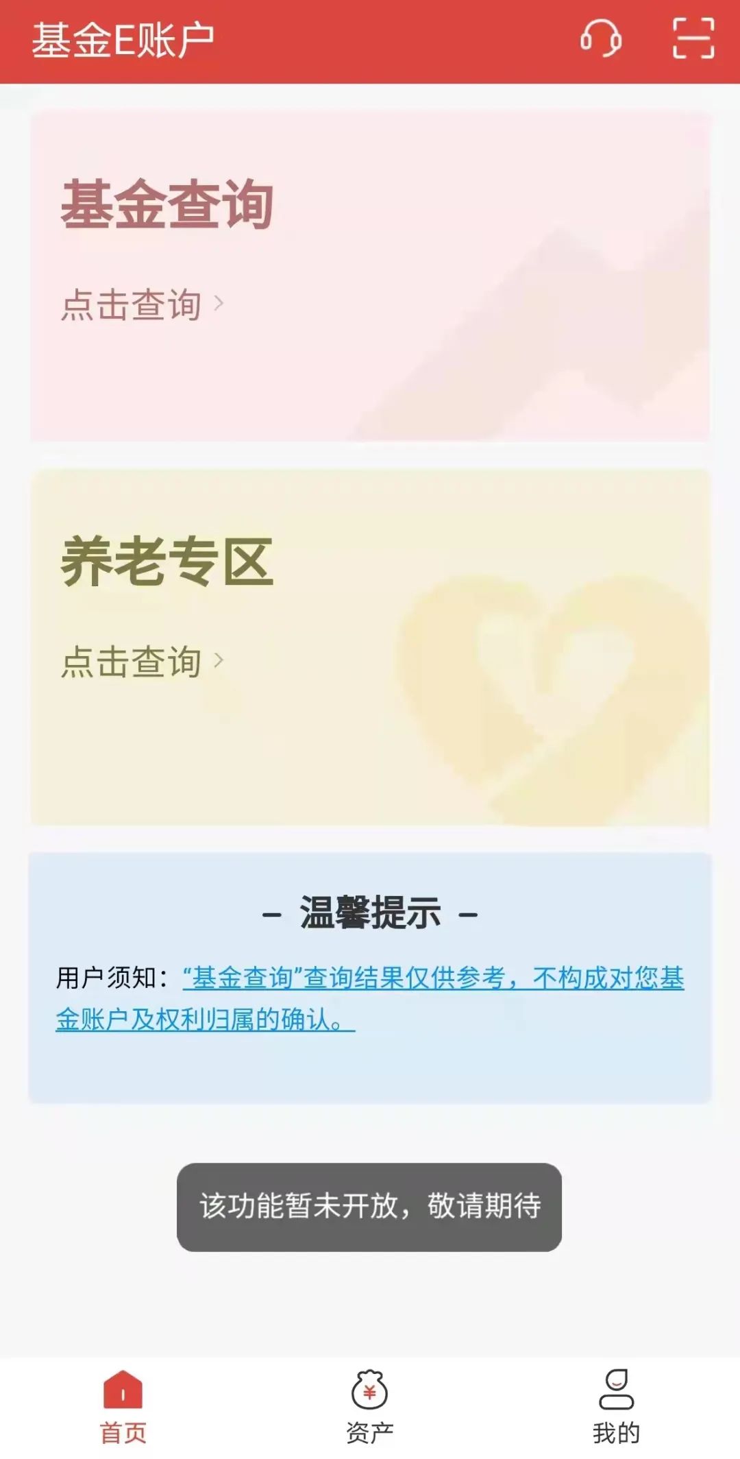 进入基金E账户之后,页面大致分为“基金查询”与“养老专区”两大板块。