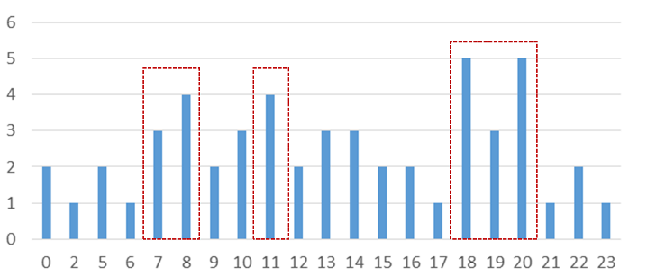基于历年火灾地点与时间分析可知,商业用地集聚区及老旧小区火灾发生频率显著高于新建小区及其他地区,历史街区中蕺山街区明显高于其他街区。7-8点、11-12点、18-20点三个时间点发生火灾的风险较高,与用火用电高峰期一致。