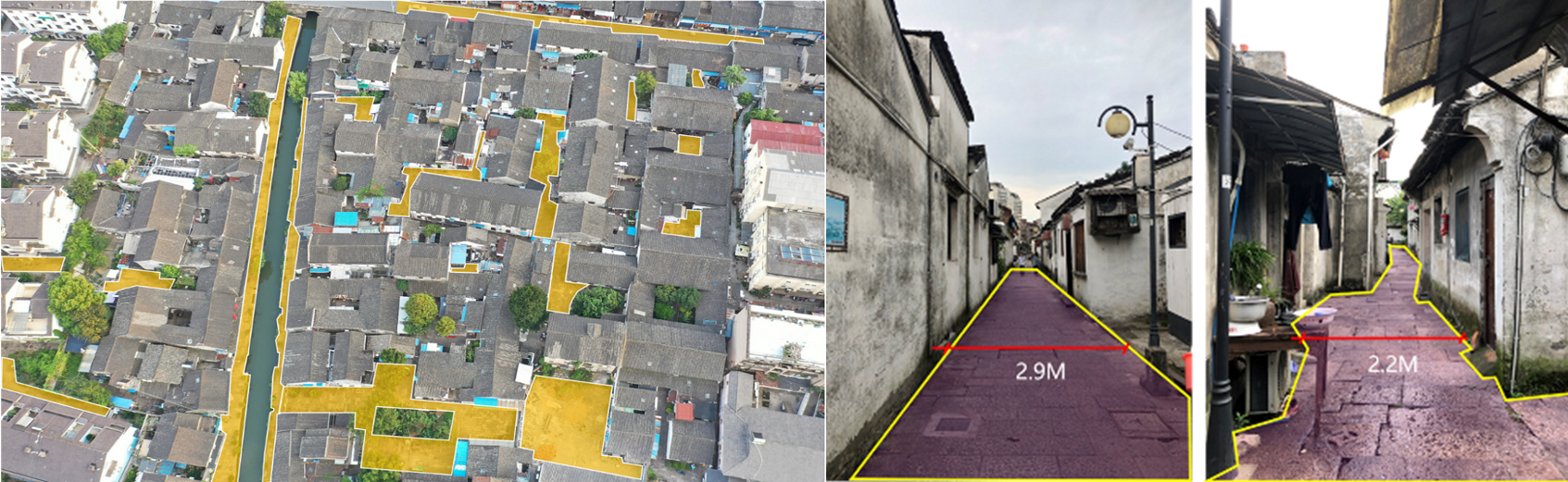 街巷空间航拍与人视角分析(上:历史街区 下:老旧小区)