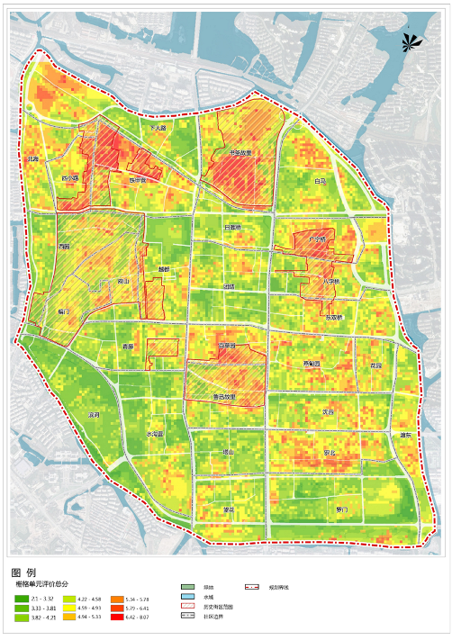 结合历史城区消防特点,需要开展细致的消防风险评估工作,可借鉴历史街区风险评估思路:在评估因子的选择上,应当在基于整体视角整合人口密度、用地等区域空间布局因子的基础上,叠加街区与建筑自身维度的因素进行分析;在评估精度上,应体现同一用地上不同空间的风险差异,将评估结果落在更小的栅格单元或空间单元(如地块、建筑)上。