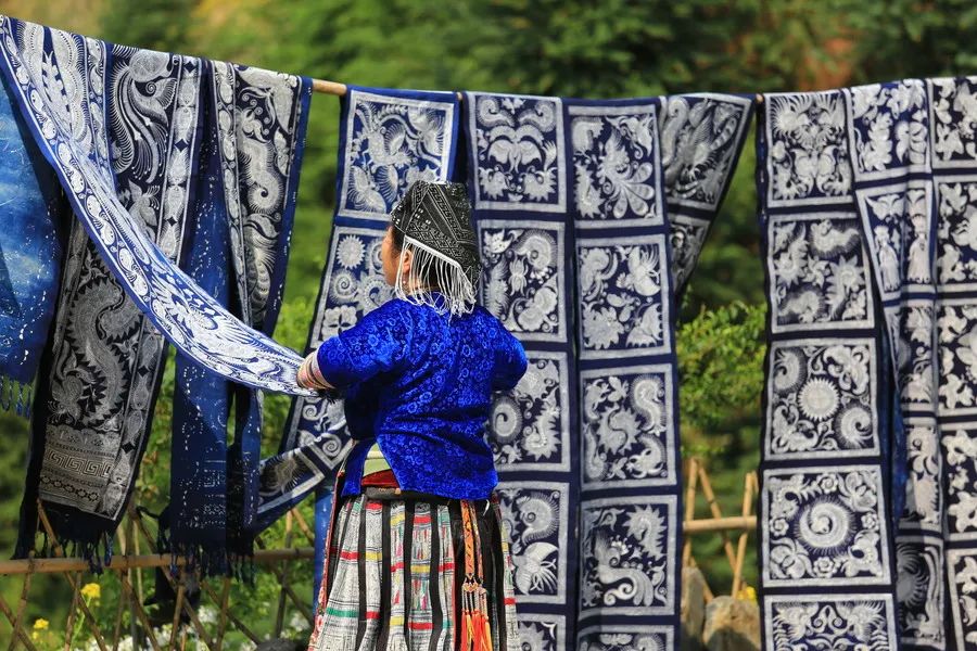 榕江县是知名的“文化千岛”,拥有世界级非物质文化遗产1个,国家级非物质文化遗产9个,省级非物质文化遗产32个。在发展南板蓝根产业过程中,县委、政府立足板蓝根是蜡染和刺绣这两种最能展现榕江苗侗民族璀璨文化所必不可少的蓝靛膏原材料的实际,依托不断发展壮大的南板蓝根种植和蓝靛膏生产规模,大力引导“非遗+”创新发展,奏响了融合发展第三产业的“三部曲”。一是筑巢曲。先后创建了月亮故乡非遗文创中心、千匠百艺扶贫车间、倚山人手造工作室等,作为传承发展传统文化、民族文化和非遗文化的主阵地重点支持,重点打造;二是引凤曲。通过举办非遗、旅游、文创等活动,与知名设计师、服装品牌等合作,受邀外出多次参加旅游文化等宣讲会等,打好打响榕江非遗名片,广交朋友,广引人才,不断积累设计资源、工艺资源和市场营销资源,为榕江“非遗”产业发展打下良好基础;三是交响曲。通过先后成功举办2018年“乡村旅游助脱贫·千匠百艺奔小康”为主题的贵州黔东南州第九届旅游发展大会和2020年贵州省首届蓝染文化交流活动“蔚蓝已来”蓝染文化交流论坛、非遗美学主题沙龙“无界·纬度”等,在国内外产生了广泛而深远的影响。