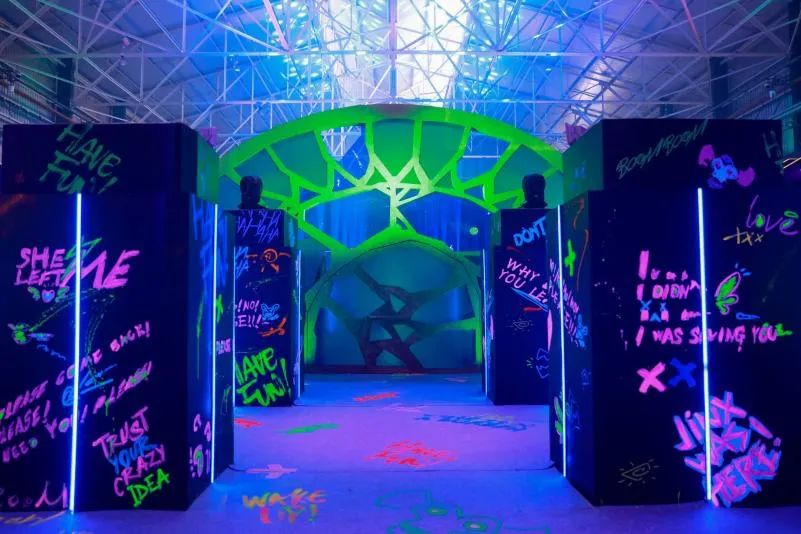笔者在入场时,祖安的场景搭建和NPC设置更加符合剧中“黑市”的概念,到访者可以在其中更换自己观影所代表的角色、做NPC人物获取任务道具、体验故事中出现的拳套机、金克斯的各项发明和内心世界等。诚然,部分设计由于时间设置无法完全还原剧中场景,但管中窥豹一番,双城之间的不平衡也较为容易被玩家所理解。