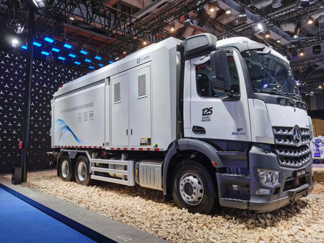 福建海山机械带着整车自主生产的挖掘抽吸车亮相第四届进博会,基于奔驰Arocs底盘,据介绍该车用于抢险救援,可以无损开发。