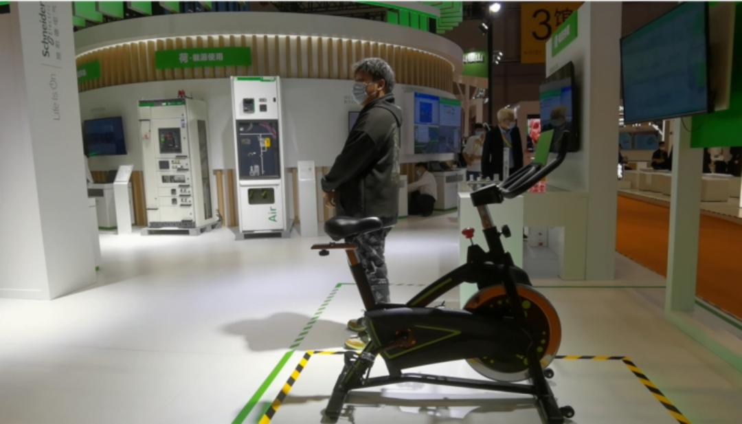 基金君在现场还看到了施耐德的“节碳达人”互动式自行车运动发电项目,骑行自行车,可以发电为手机等设配充电,能够直观地感受到减碳的量化表现。