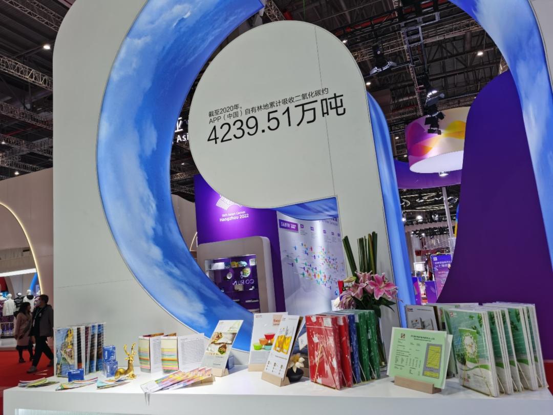 另外,在消费品展区,金光集团APP(中国)也以“碳中和之旅”为主题,展示了一系列内容,包括“林浆纸一体化”的成果和未来绿色碳中和发展的规划。