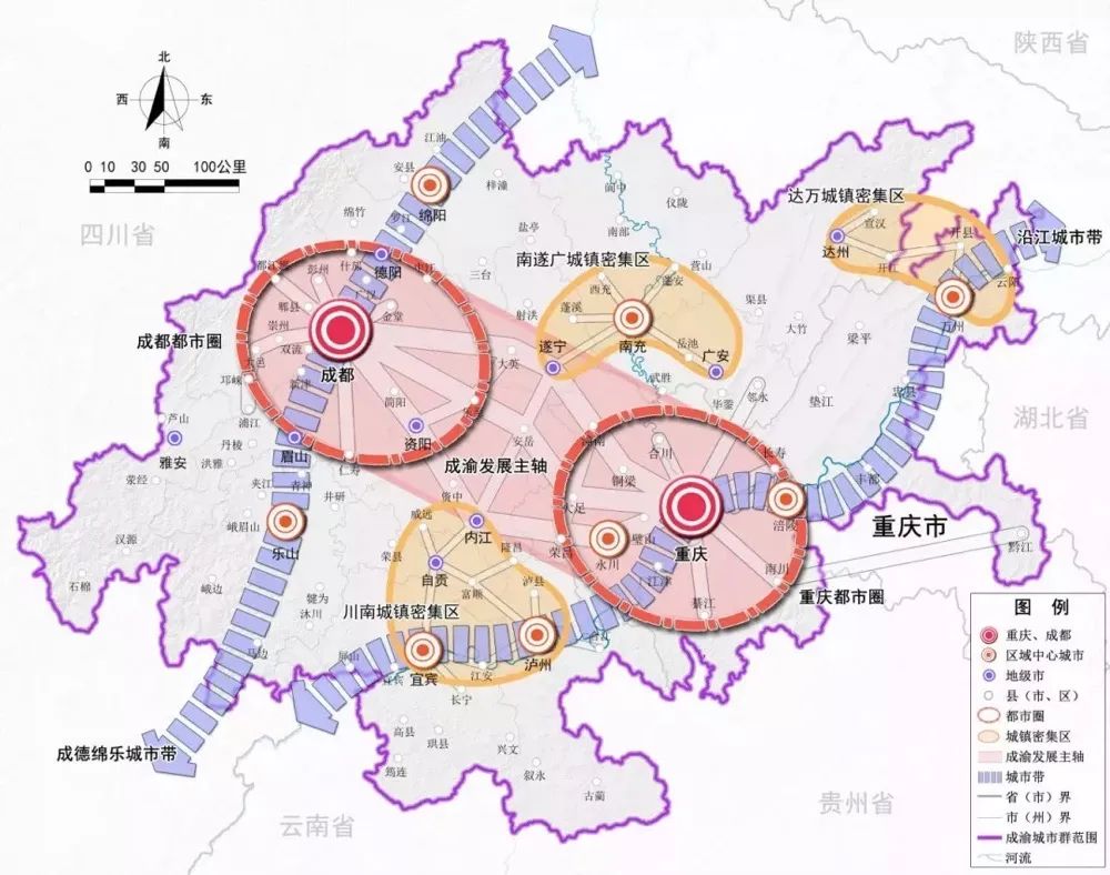 成渝地区双城经济圈区域格局示意图 图片来源:《成渝城市群发展规划》