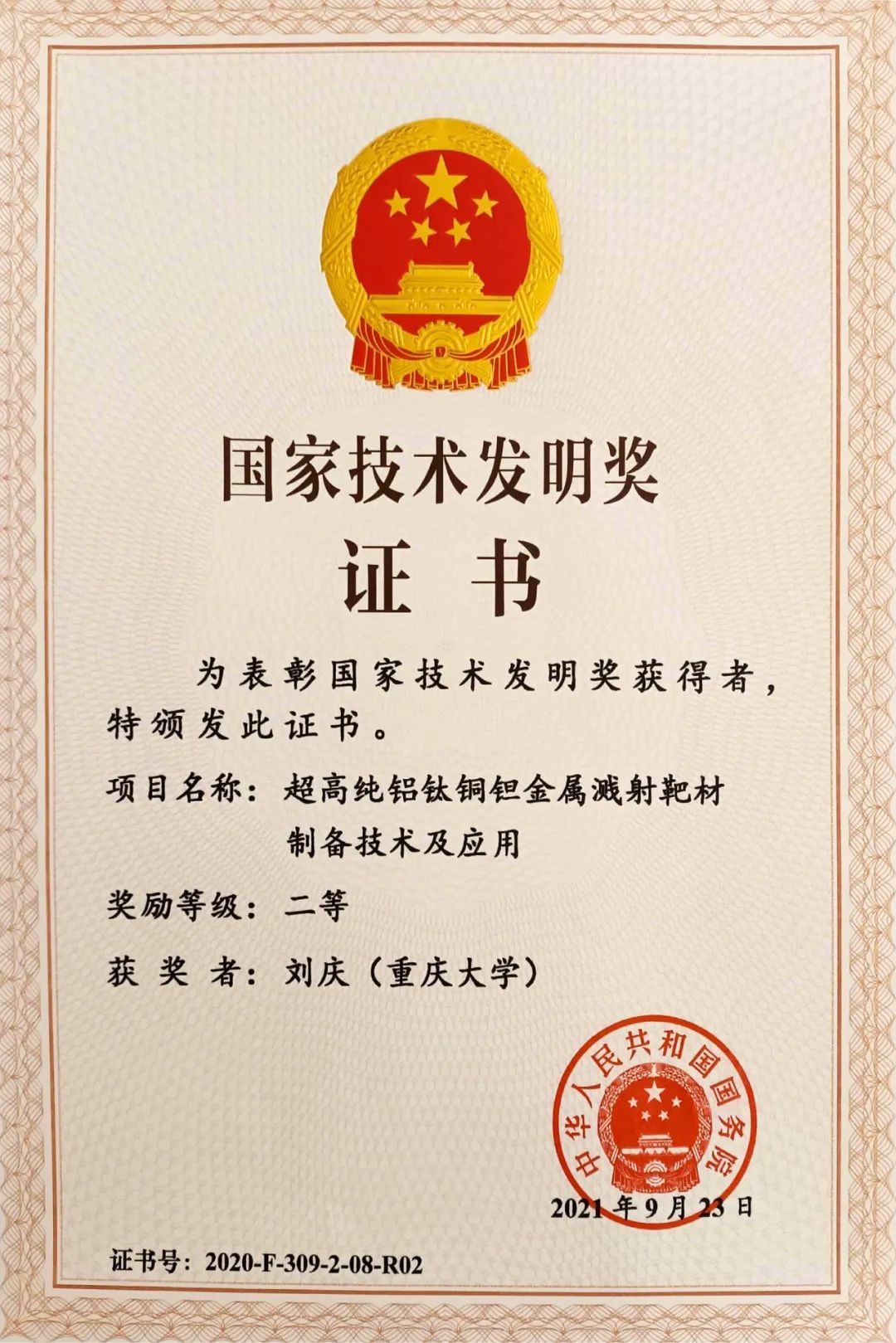 11月3日上午,2020年度国家科学技术奖励大会在北京人民大会堂隆重召开。由重庆大学牵头,李百战教授作为第一完成人的“建筑热环境理论及其绿色营造关键技术”荣获国家科学技术进步奖二等奖。由宁波江丰电子材料股份有限公司与重庆大学联合攻关,刘庆教授担任项目首席科学家的“超高纯铝钛铜钽金属溅射靶材制备技术及应用”项目荣获国家技术发明奖二等奖。