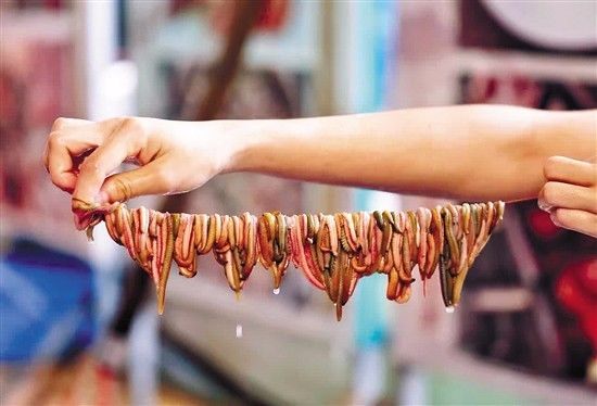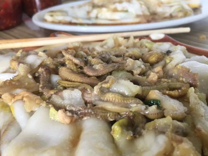 禾虫是珠三角特色传统美食之一,学名为疣吻沙蚕,属环节动物门沙蚕科。因为它经常出没在乡间禾田里,以禾根为食物,每年又恰逢广东早晚两造水稻孕穗扬花时破土而出,故得“禾虫”之名。因为一年里只有很短暂的食用期限,珠三角一带流传着“千金难买禾虫季”的美誉,以此来说明禾虫的难得和美味。
