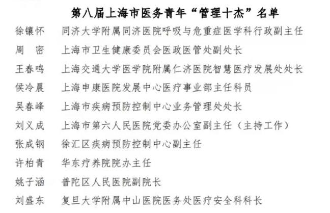 原标题:《【同济•新闻】同济大学附属同济医院徐镶怀同志获评第八届上海市医务青年“管理十杰”》