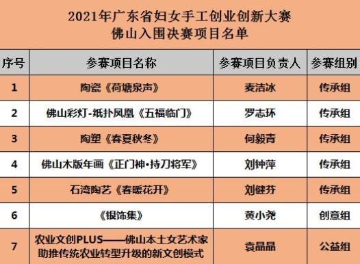 原标题:《喜讯!佛山7个项目入围省妇女手工创业创新大赛决赛》