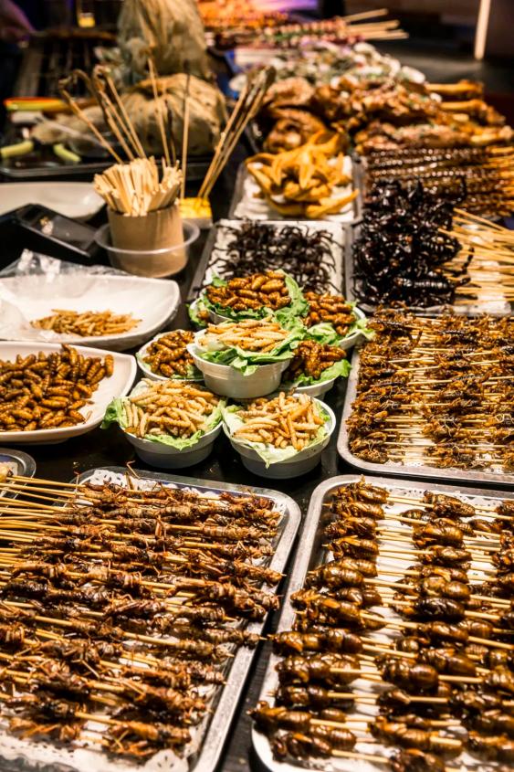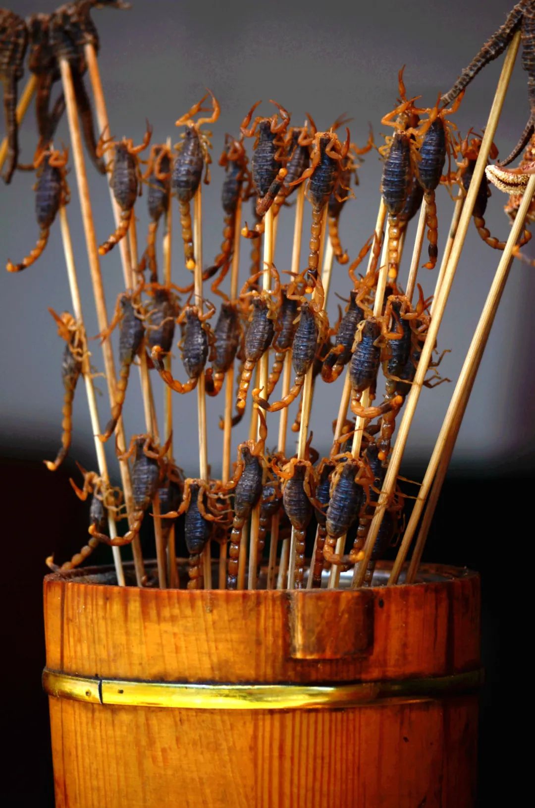 你可别小看这昆虫,小小的身躯,却有大大的价格。买牛肉、羊肉都论斤论两,买知了猴、蝎子却要论个论只,一只知了猴均价 8毛,有时更贵,一盘下来,没个百八十块可不行,蝎子价格更高,每只超过1块。