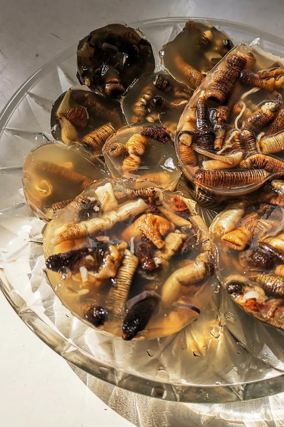 严谨说来,吃虫并非山东人的专属。云南人用蚂蚁做汤、有昆虫宴,广东人爱吃禾虫煎蛋,沙虫(沙虫其实不是虫,而是一种环节动物)做的土笋冻则是福建人的心头好。从世界范围内看,墨西哥和东南亚的泰国、柬埔寨,都有虫类菜式,连地处欧洲的意大利,都有活蛆奶酪这种逆天食物。