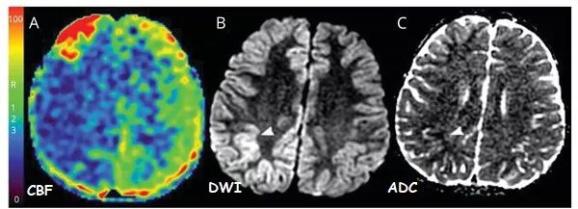 明显可见,灌注有助于癫痫类卒中的早期鉴别(图4)。