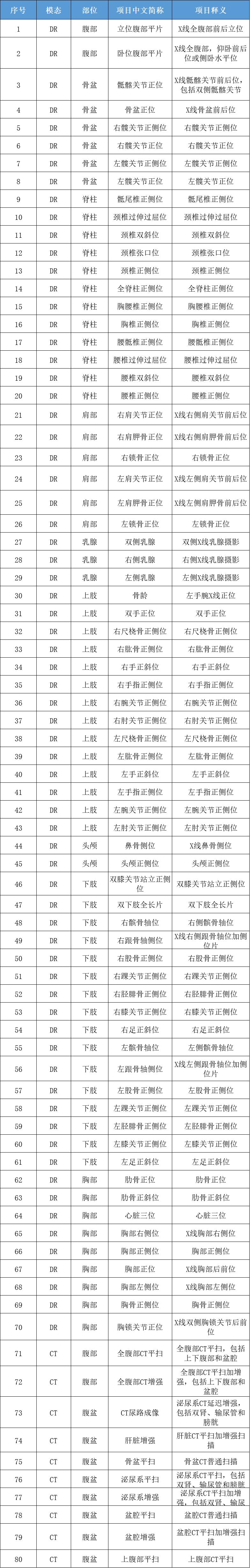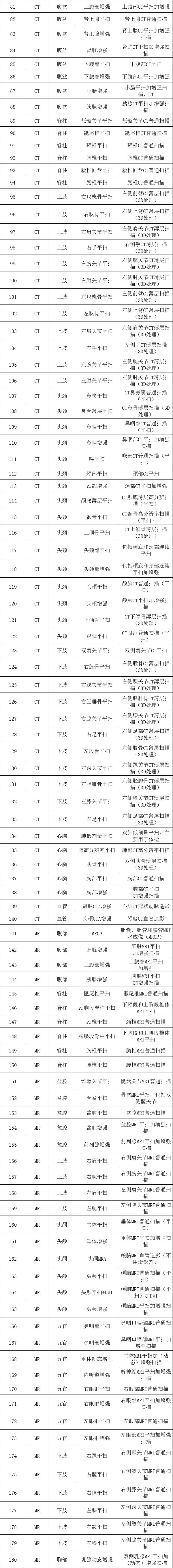 (二)医学影像检查资料互认共享项目180项
