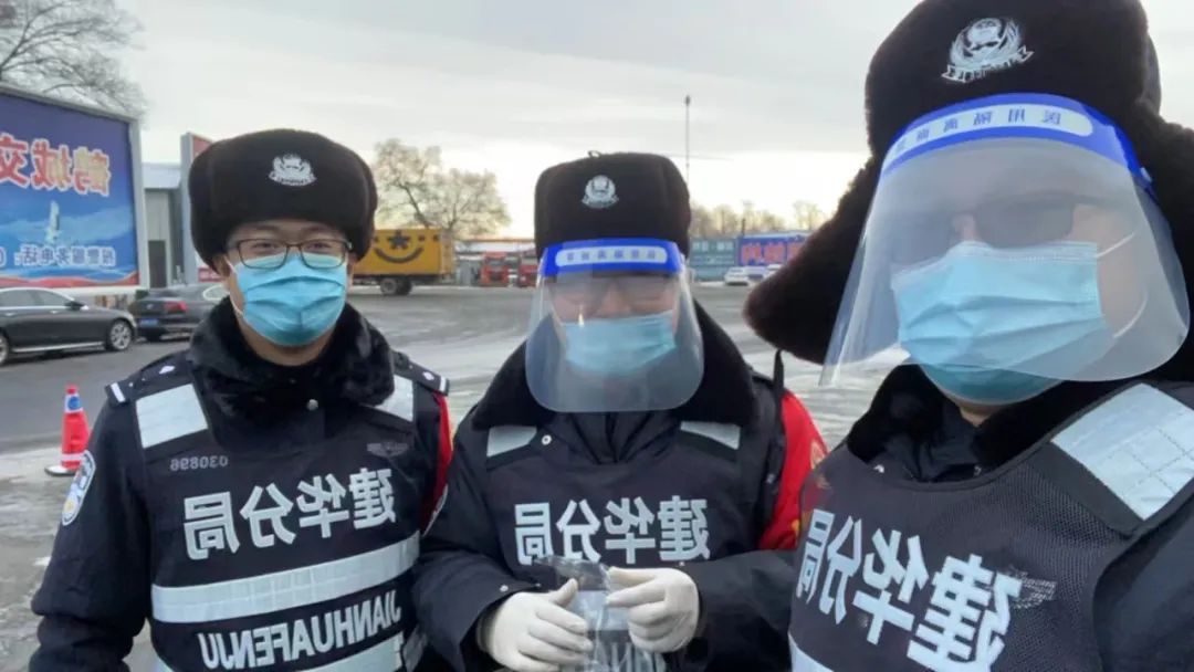 11月8日晚,一场大雪如期而至,记者驱车来到我市建华出城口,看见寒风大雪中站着两名身着警服的公安民警。虽是寒风凛冽、气温骤降,但这不能磨灭防疫一线民警的斗志,他们正在细致的核查每一辆出城车辆的核酸报告。从帽子上、身上的积雪,不难看出他们已经在这坚守很长时间了。由于天气寒冷,脸上的医用面罩会产生水蒸气挡住视线,口罩上边结的都是冰珠。