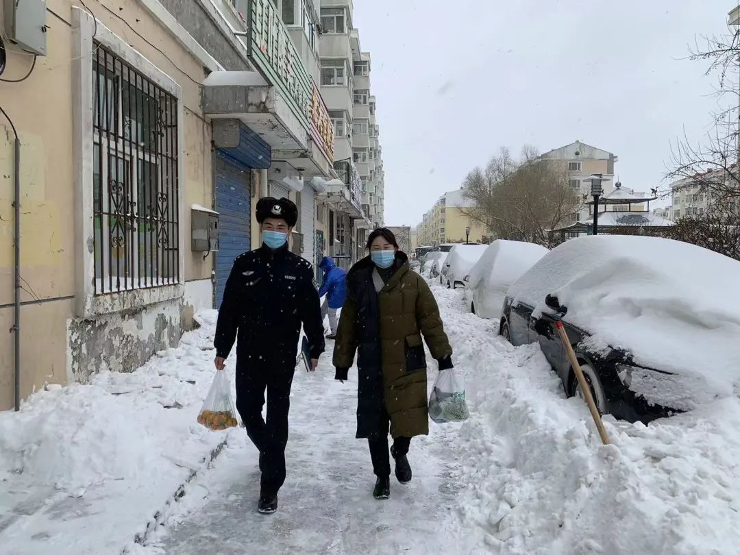 社区民警顶着大风雪深入辖区各行业场所和居民小区开展安全隐患大排查,重点对水电煤气等要害部位进行安全检查、排除安全隐患,切实将风险隐患消除在萌芽状态。中华街派出所民警冯志明在走访居民小区的过程中发现多名独居生活的老人,受风雪天气影响出行不便利。他及时与街道、社区等部门沟通,联系志愿者帮助老人采买生活物资,并将自己的电话留给了这些老人,告诉他们有需要可以随时联系自己。分局宣传部门通过新媒体平台及时发布最新的天气预警信息和出行提示,提高广大群众在暴雪天气中出行的安全意识。