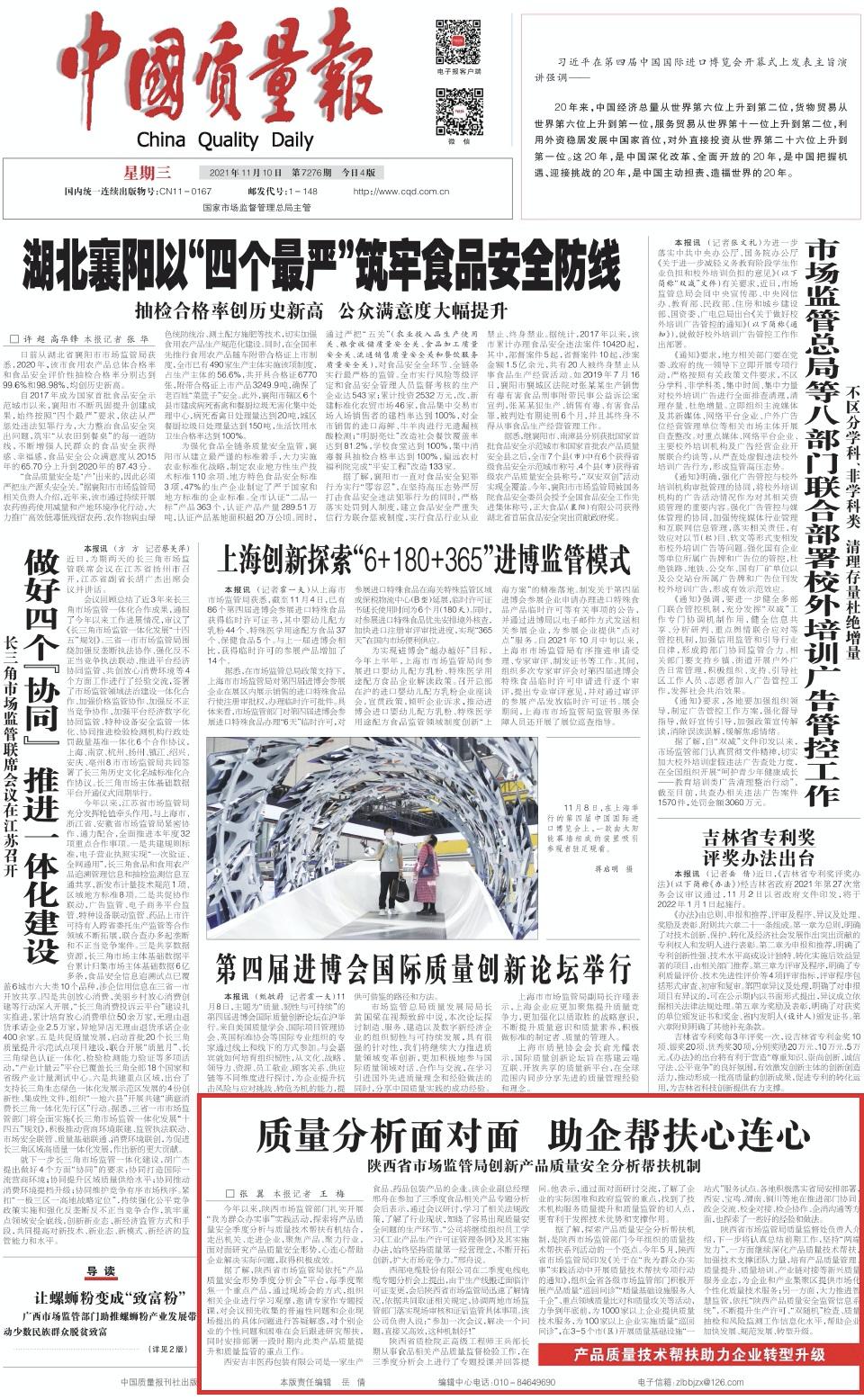编者按:11月10日,中国质量报头版以《质量分析面对面 助企帮扶心连心》为题,对陕西市场监管部门将产品质量安全季度分析与质量技术帮扶有机结合,走进企业 ,面对面研究产品质量安全形势,心连心帮助企业解决实际问题的经验和做法进行宣传报道,现全文予以转发。