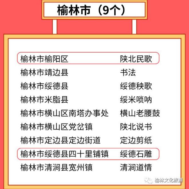 其中,榆阳区(陕北民歌)、绥德县四十里铺镇(石雕)已入选2021—2023年度“中国民间文化艺术之乡”拟命名名单。