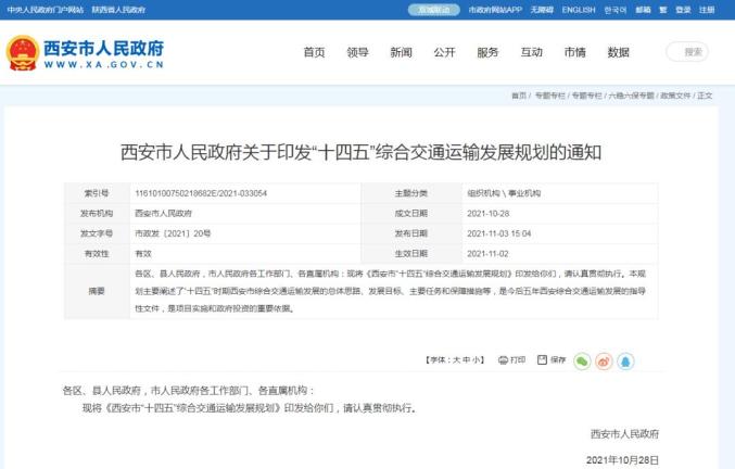 近日,西安市政府发布《西安市“十四五”综合交通运输发展规划》(以下简称《规划》),提出了西安将在2025年建成“交通强国典范城市”目标。根据规划,西安将打造一体化交通运输网,实现都市圈1小时通勤、城市群2小时通达、全国主要城市3小时覆盖。