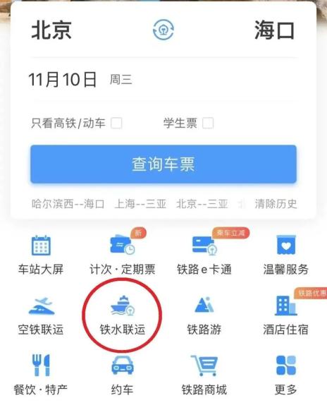 此次12306正式上线了“铁水联运”