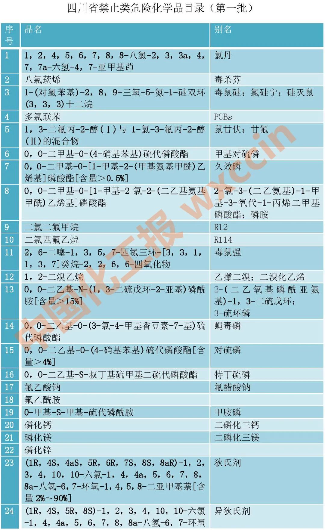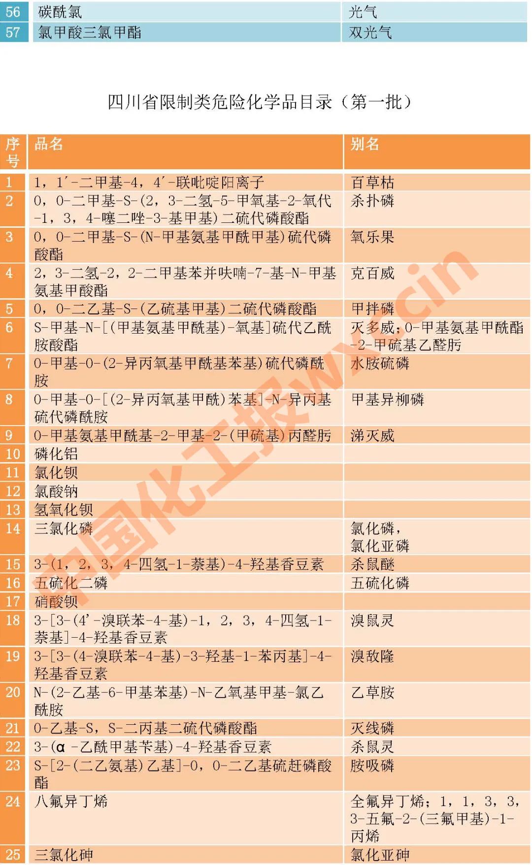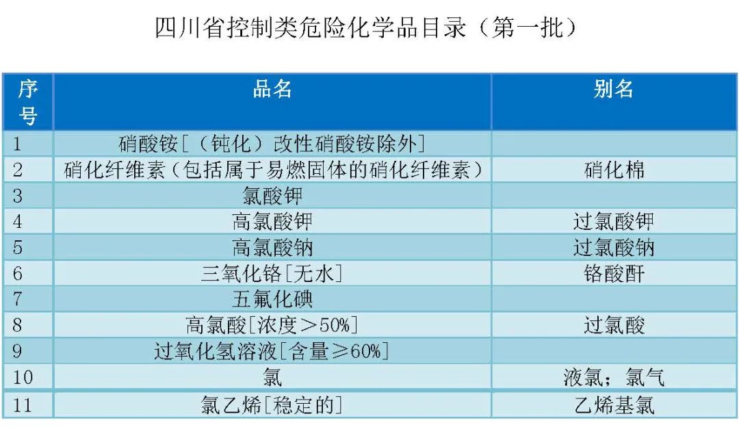 原标题:《禁止57种,限制91种!四川公布第一批危险化学品“禁限控”目录》