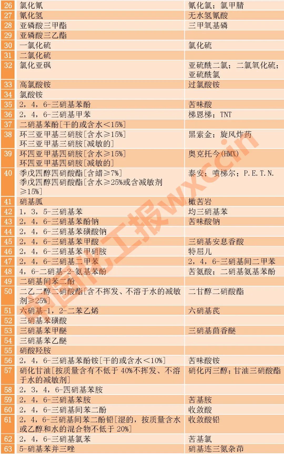 禁止类目录含57个品种,主要是收集国家各部委明令禁止的危险化学品有关公告,并与《危险化学品目录》比对,将55种危险化学品纳入禁止类危险化学品目录,增加了生产过程风险极高、安全管控代价大且在我省尚没有生产的2种危险化学品(光气、双光气)。